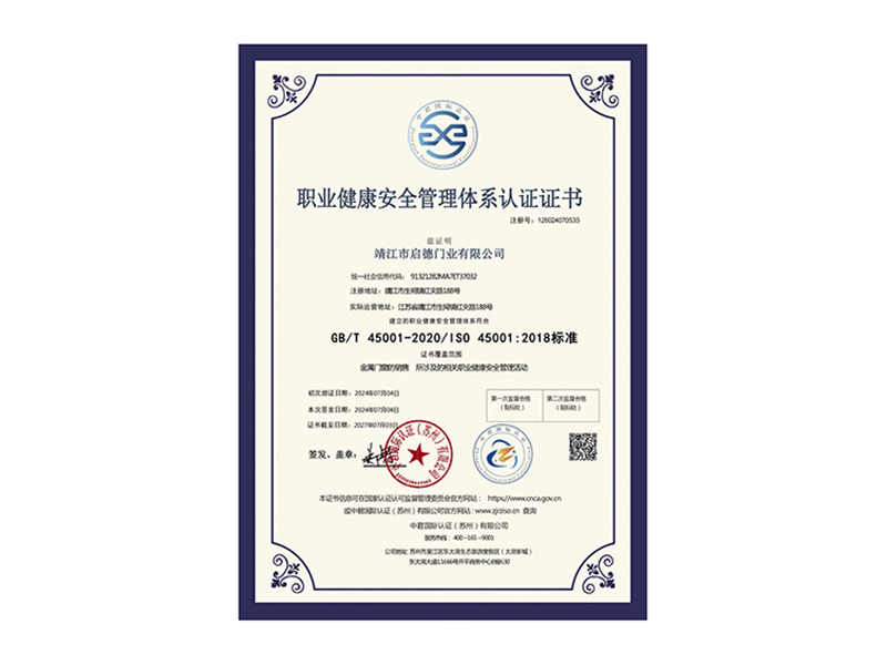 • 職業健康安全管理體系認證證書